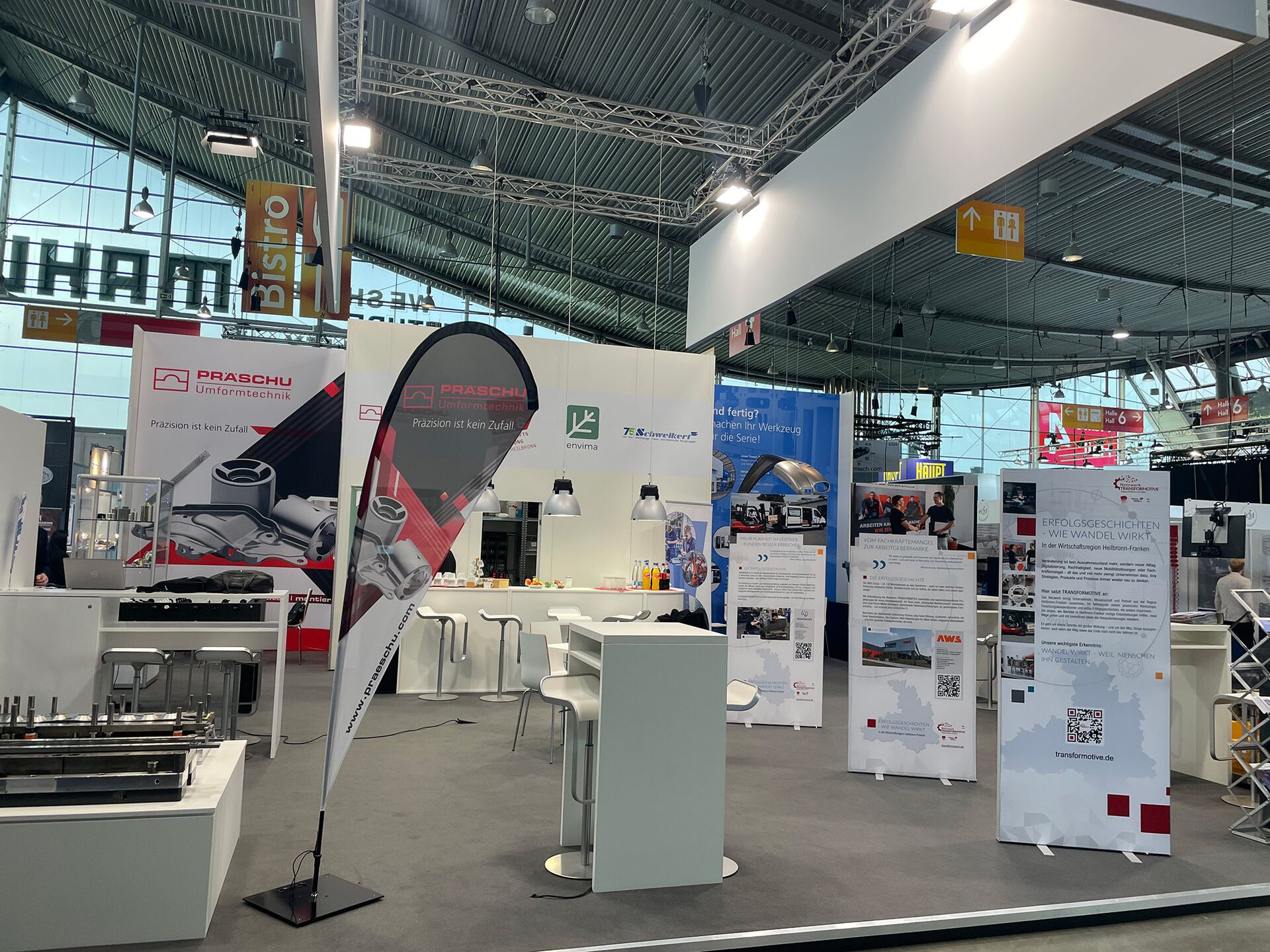Im Zuge dessen bieten wir Unternehmen aus dem Wirtschaftsraum Heilbronn und im Einzelfall auch darüber hinaus die Möglichkeit, sich mit ihren Produkten und Dienstleistungen auf einem Gemeinschaftsstand auf wichtigen nationalen Fachmessen zu präsentieren.